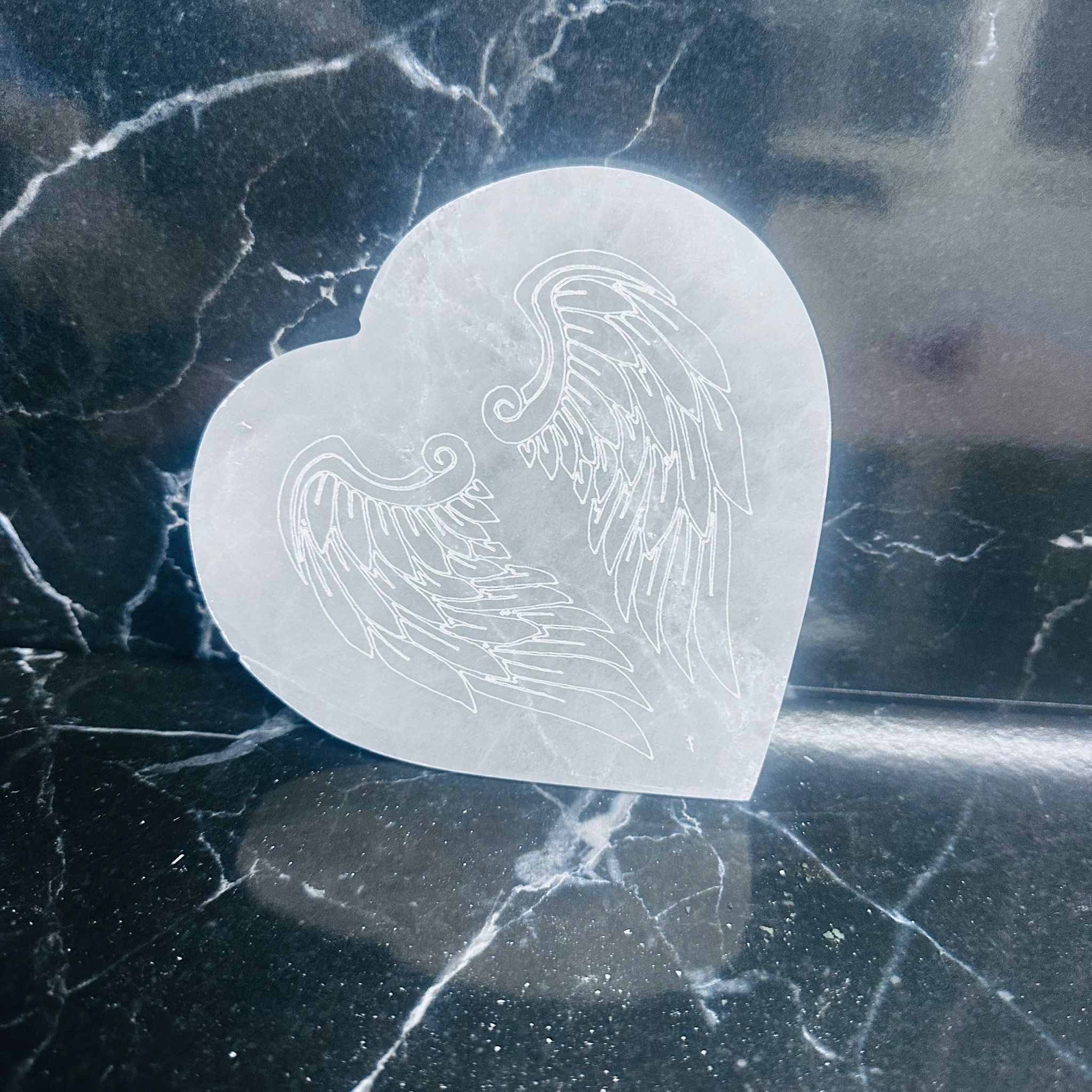 Selenite Heart Disc Angel Wings
